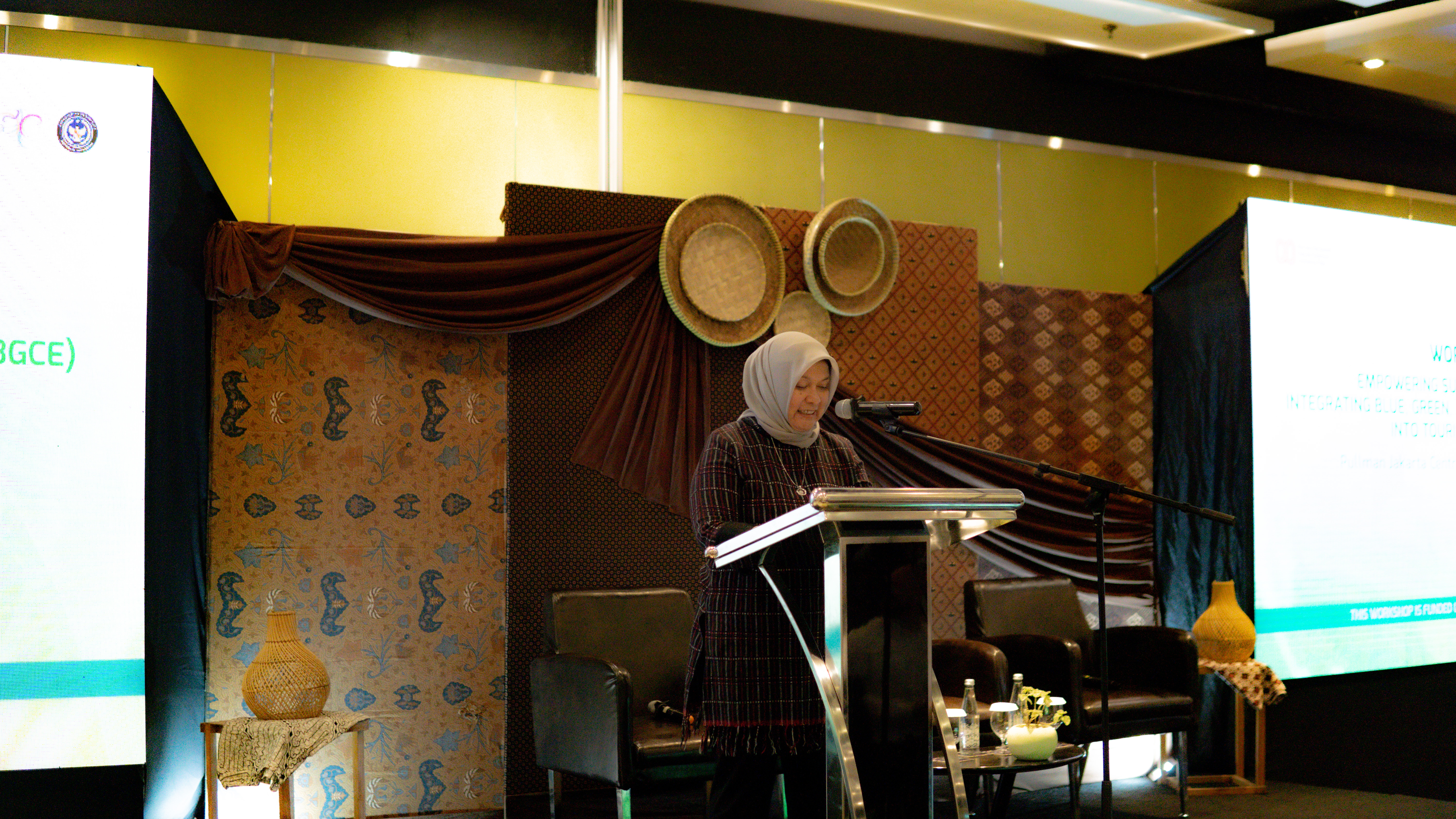 Workshop dibuka oleh Ibu Rizki Handayani, Deputi Bidang Industri dan Investasi, Kementerian Pariwisata yang menyampaikan bahwa Pariwisata merupakan sektor dengan kontribusi besar bagi ekonomi nasional, namun juga rentan terhadap isu lingkungan dan perubahan iklim. Hal ini mendorong pemerintah menempatkan Blue, Green, dan Circular Economy (BGCE) sebagai instrumen utama pembangunan pariwisata berkelanjutan. Workshop ini menjadi upaya Kementerian Pariwisata untuk memberikan pemahaman, pelatihan, dan berbagi praktik terbaik terkait implementasi BGCE, sekaligus membangun kemitraan strategis menuju pariwisata yang hijau, inklusif, dan berkelanjutan. Komitmen tersebut tertuang dalam RPJMN 2025–2029 dan RPJPN 2025–2045, di mana pariwisata berkualitas ditetapkan sebagai prioritas pembangunan nasional.