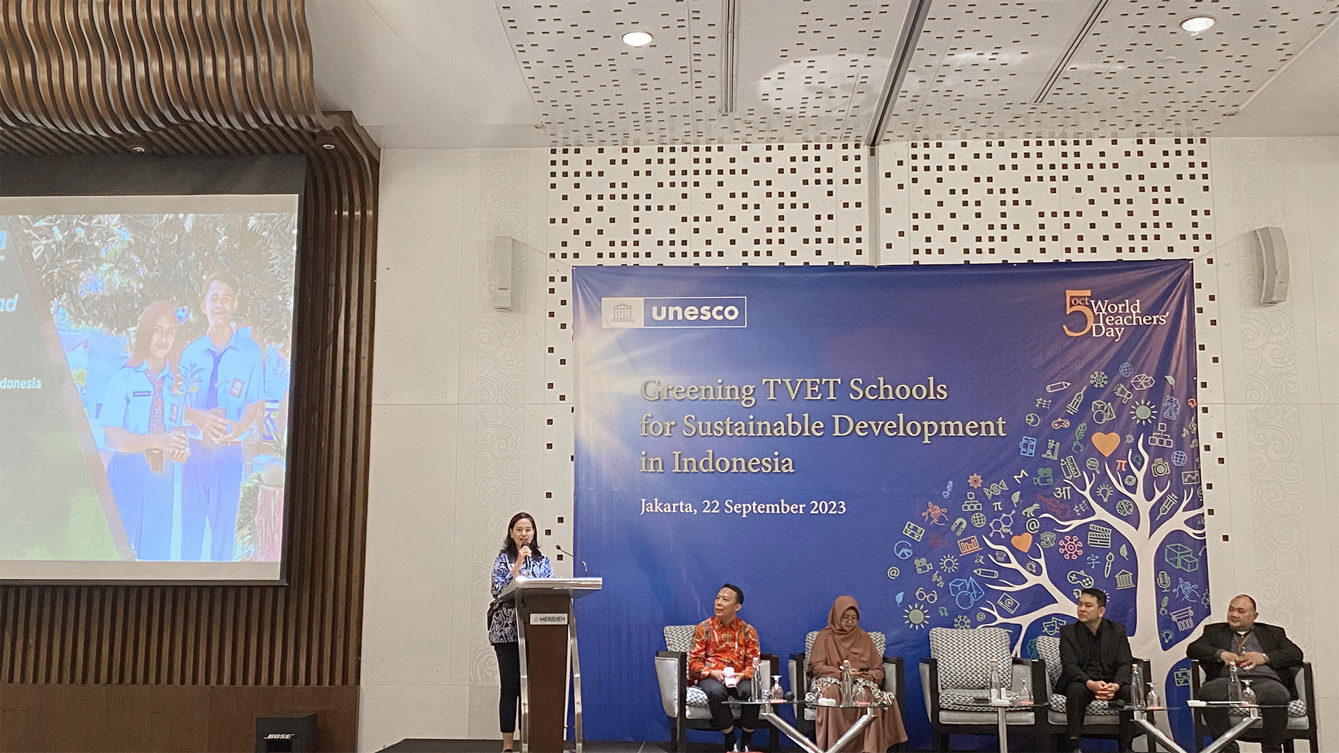 Untuk memperkuat pelaksanaan kegiatan Sekolah Menengah Kejuruan (SMK) yang berwawasan lingkungan di Indonesia, UNESCO Jakarta mengadakan Workshop Greening Technical and Vocational Education and Training (TVET) Schools for Sustainable Development pada Jum’at, 22 September 2023 di Hotel Le Meridien, Jakarta. Kegiatan ini dihadiri oleh 58 Sekolah Menengah Kejuruan (SMK) yang berasal dari JABODETABEK.