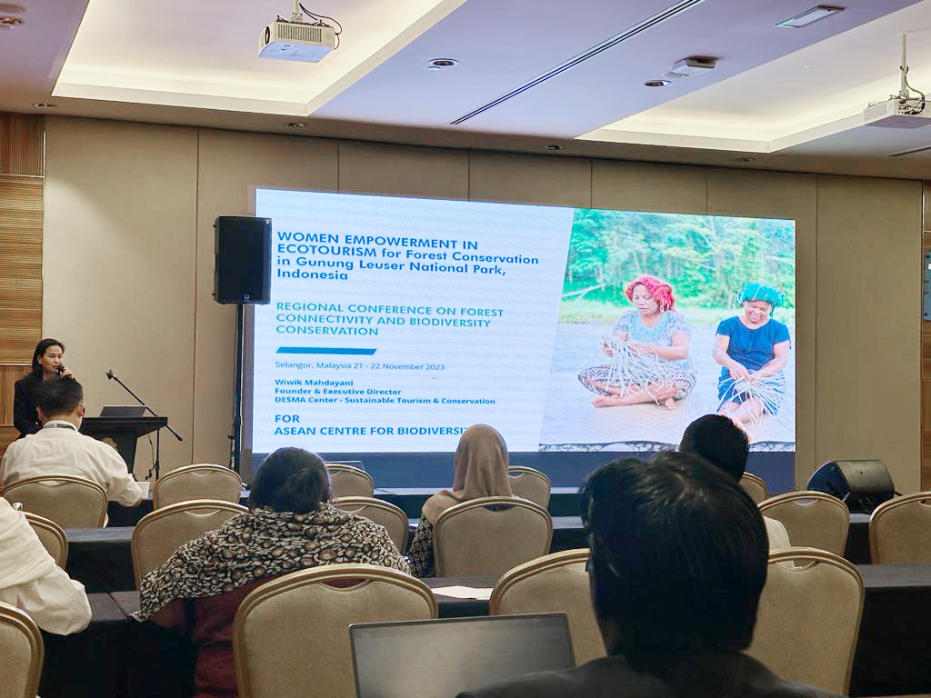 Regional Conference Forest Connectivity and Biodiversity Conservation, dilaksanakan 21-22 November 2023 di Selangor, Malaysia. Konferensi ini diselenggarakan oleh Departemen Kehutanan Semenanjung Malaysia; Kementerian Sumber Daya Alam, Lingkungan Hidup dan Perubahan Iklim; UNDP Malaysia; dan Proyek GEF-GOM IC-CFS bekerja sama dengan ASEAN Centre for Biodiversity (ACB). Bersama dengan para pembicara internasional dan regional, DESMA Center diundang oleh ACB untuk menjadi narasumber pada konferensi tersebut. Diwakili oleh Founder dan Executive Director Wiwik Mahdayani mempresentasikan Women Empowerment in Ecotourism for Forest Conservation, dengan menampilkan hasil program DESMA Center di Taman Nasional Gunung Leuser, Indonesia. Program ini adalah proyek pembangunan Kementerian Lingkungan Hidup dan Kehutanan Republik Indonesia, bekerja sama dengan ASEAN Centre for Biodiversity (ACB), dibiayai bersama oleh Republik Federal Jerman melalui KfW.