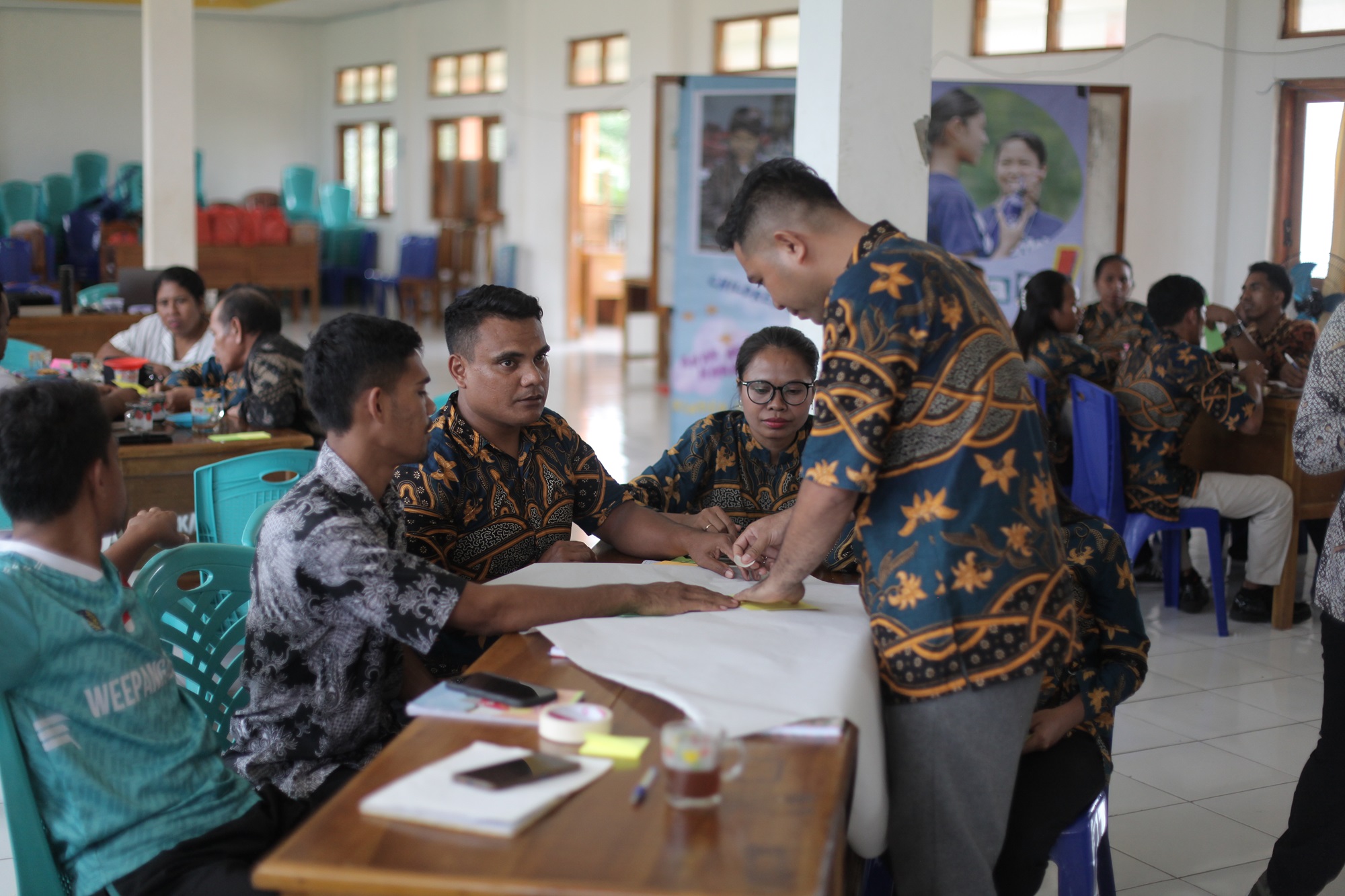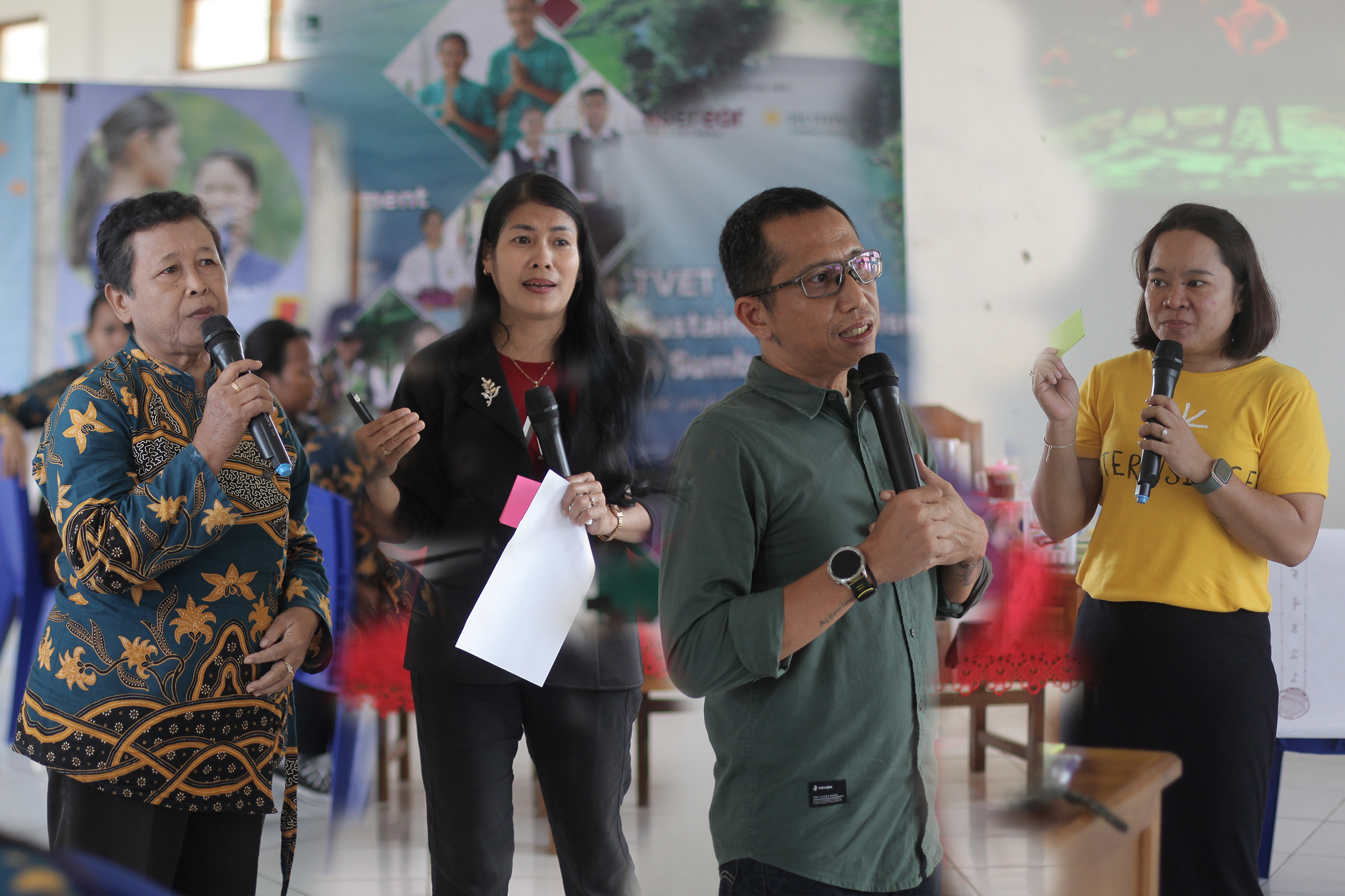 Ibu Pupu Purwaningsih, Misereor dan KMW memandu sesi pertama dengan menggali wawasan peserta serta diskusi kelompok terkait perlindungan dan implementasi program sekolah ramah anak remaja di lingkungan sekolah menengah pariwisata Sumba.