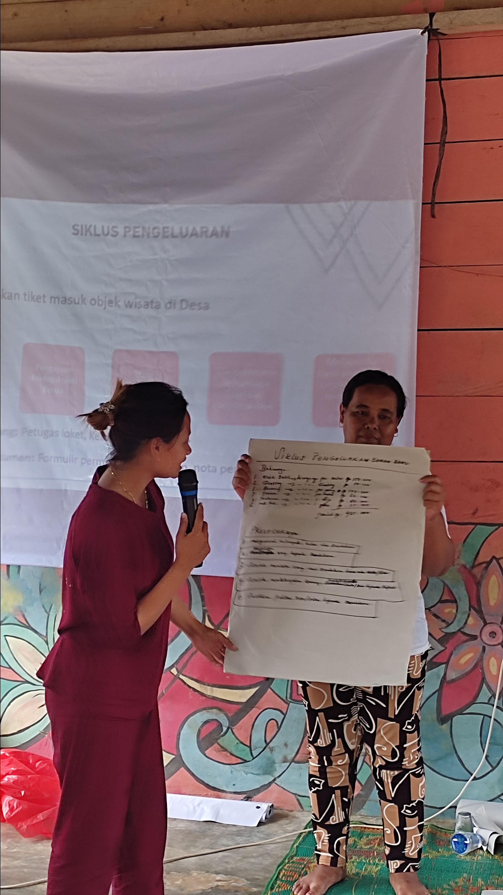 Pada sesi kedua, peserta dikenalkan dengan berbagai dokumentasi atau bukti transaksi yang biasa digunakan serta pemahaman mengenai unsur penggunaan keuangan. Sesi ini merupakan bagian dari tahapan pengelolaan keuangan yang diharapkan dapat membantu kelompok desa dalam melakukan praktik pengelolaan keuangan yang baik. Pemahaman terkait pengelolaan keuangan disempurnakan dengan tahapan terakhir pelatihan yaitu pengendalian keuangan yang meliputi pelaporan dan pertanggungjawaban.