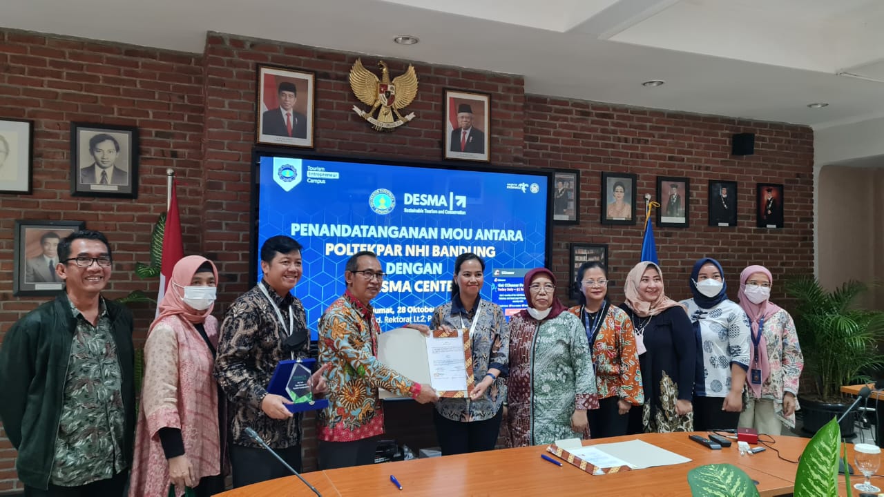 DESMA Center Menandatangani Nota Kesepahaman (MoU) dengan Poltekpar NHI Bandung di Kampus Politeknik Pariwisata NHI Bandung, di Bandung. Berlangsung pada Jumat, 28 Oktober 2022, penandatangan dilakukan oleh Founder & Direktur DESMA Center Wiwik Mahdayani dengan Wakil Ketua I (Bidang Akademik), Erfin Roesfian.